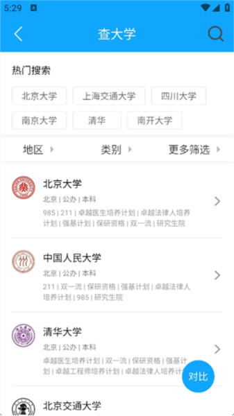 数据对比分析:提供院校对比、学科评估、就业率及深造情况等数据,辅助用户进行综合选择;