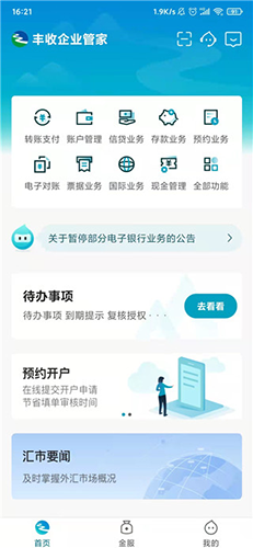 3、服务丰富:集成了多样化的金融服务,可一站式满足企业的各类金融需求;