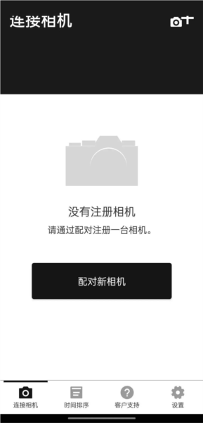 ② 进入配对界面,点击“配对新相机”。(操作前请确保手机蓝牙与Wi-Fi已开启)