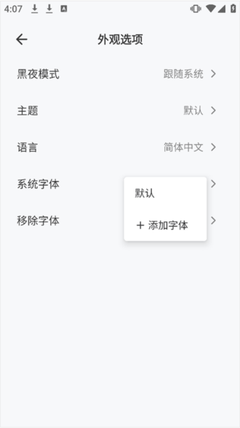 5、另外app还可以设置外观和添加字体