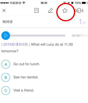 2. 点击题目上方的收藏按钮,该题目在答题卡中会显示特殊标识,同时被自动加入错题本。