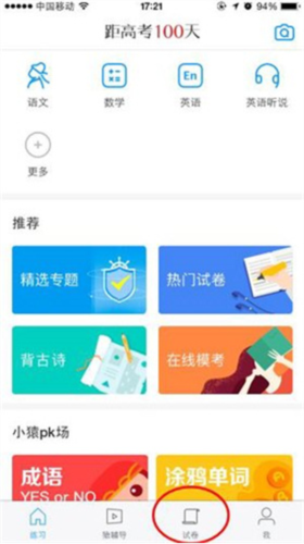 1. 首先启动猿题库应用,在底部功能栏找到“试卷”选项并点击进入。