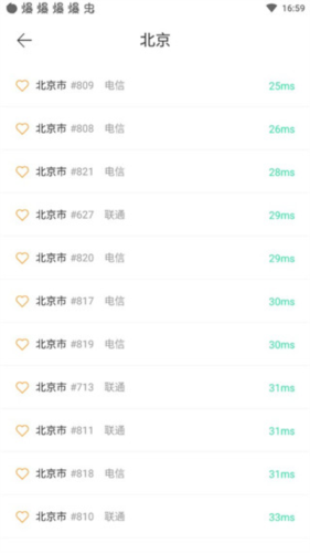 3、选择目标IP,查看各城市线路信号状态与编号,选取信号较好的点击连接。