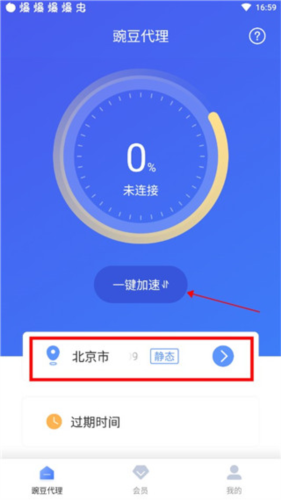 4、返回主页可见IP地址已更新,点击【一键加速】即可开始使用。