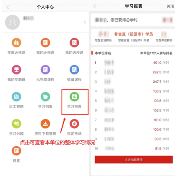 可通过手机APP“个人中心”页面内的“学习报表”功能进行查看。