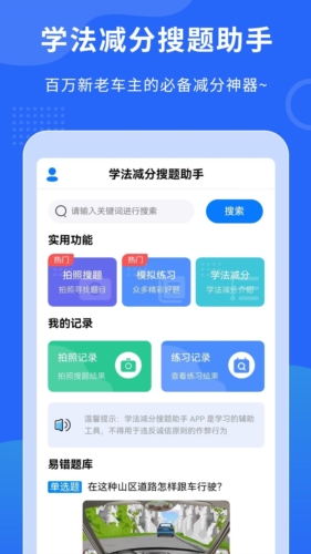 这款智能应用专门为驾驶员设计,能在交通违章扣分后提供有效帮助。通过它,您可以系统学习交通安全知识,并参与考试获取减免分数,从而降低驾照被吊销的风险。应用题库包含摩托车、小车、客车及货车等多种车型的题目,能适应不同驾驶者的学习需要。其最新版本的搜题功能尤为强大,可帮助您迅速解决各类疑难问题。如需高效准备考试,欢迎即刻下载使用。学法减分拍照搜题,让安全驾驶伴随您的每一次出行。