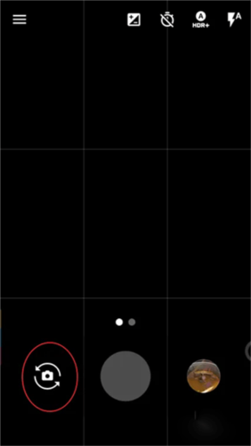 3、若打开相机后画面为黑屏,可点击左下角图标切换至前置摄像头,然后点击左上角菜单按钮进入功能列表。