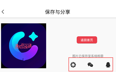 4、点击保存按钮,处理后的照片可通过微信、QQ等社交平台直接分享。