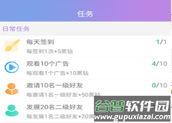 每日签到即可领取黑钻,黑钻可直接兑换现金;观看广告也能赚取收益,平台每天提供多个广告观看任务;每邀请一位好友注册即可获得高额黑钻,邀请人数越多奖励越丰厚;可从好友收益中抽取一定比例分成,让邀请对象为你创造收益;绑定微信或QQ账号可获得黑钻,完成实名认证奖励更多;当黑钻积累到一定数量,可直接申请提现至微信账户。