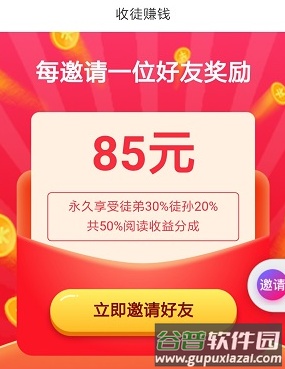 2. 每邀请一位有效好友最高奖励85元现金,并可享受两级好友转发收益的40%作为提成;