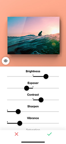 无论是滤镜还是相框,在每个细分调整项目中,VOUN都提供了全面的色彩、透明度、高光与阴影等微调选项。同时,它包含了修图所需的对比度、色温、饱和度等基本工具,让用户无需在多个应用间切换。