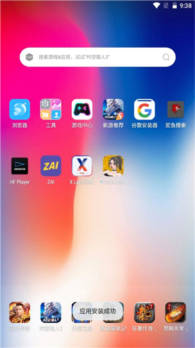 下滑屏幕打开应用管理器;可快速查找本地应用并将其直接拖拽至桌面放置。