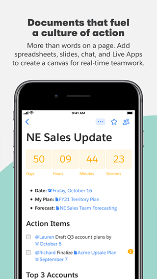 提升演示的互动性与反馈效率;幻灯片可关联Salesforce及电子表格数据,确保内容始终最新;分享想法并收集意见,无需反复发送邮件或管理版本。