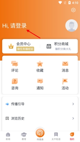1、打开应用后,点击底部“我的”选项,在页面顶部点击登录入口。