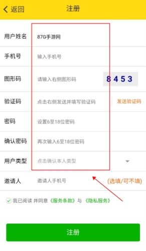 2、输入姓名与手机号码等相关信息,点击注册按钮即可完成。