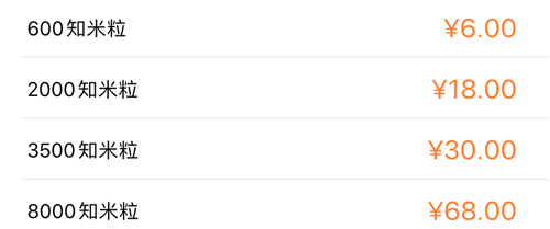 知米币充值比例大致如下:6元可兑换600知米币,18元兑换2000知米币,30元兑换3500知米币,68元兑换8000知米币。