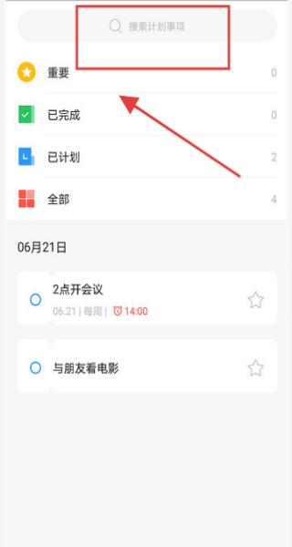 2、内置搜索功能,输入关键词如“电影”即可快速定位相关计划,提升在多项事务中的查找效率。