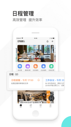 EPARK共享办公app融合实用性与趣味性,通过全面的社区服务与精彩活动,为企业增添活力,打破办公环境的单调感。界面简洁,功能强大,让企业管理和任务处理清晰高效。无论是便捷的一键邀约,还是灵活的会议室预订,EPARK始终致力于提供顺畅的办公解决方案。立即加入,开启高效办公新旅程,让工作过程更富成就感。