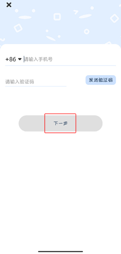 2. 输入个人手机号码及收到的验证码,进入下一步;