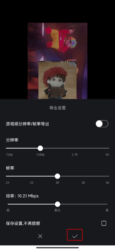 【导出设置】允许自定义分辨率与帧率,依据设备性能最高支持4K分辨率、60帧率导出并保存至本地。