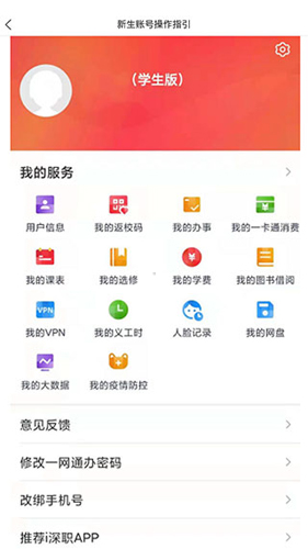 软件会根据登录账号绑定的身份信息自动切换对应版本。学生账号会启用学生版界面与功能,教职工账号则显示教师版。在校内的主要活动,如上课、考试、缴费、借书、上网、办事与消费等,都可以通过该软件方便地进行。对于新生,软件内设有迎新专区,提供详细的指引,帮助新生快速熟悉校园环境。