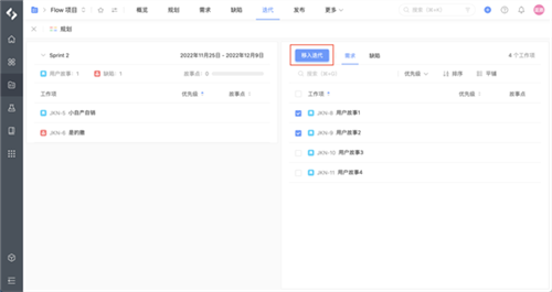2.在需求待办列表批量移入迭代: