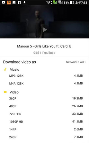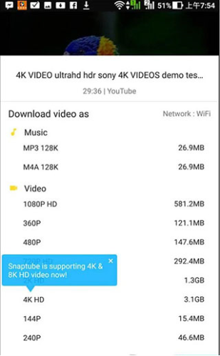 5、下载时会弹出支持的格式选项,若只需音频可选择Music,视频则选择Video,最高画质取决于片源提供的规格;