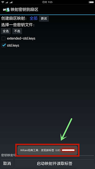 2、选择“启动映射并读取标签”,软件开始读取卡片数据;