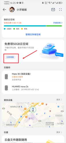 4、用户还可免费领取云空间,在首页找到“免费领50GB云空间”并点击“立即领取”。