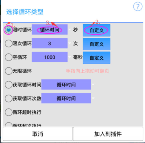 5、为限时循环赋值变量,在循环选项中选择自定义并选取对应的整数变量。