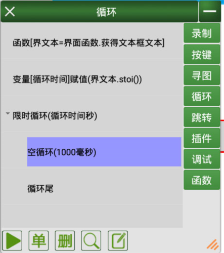 循环时间变量由界面文本内容转换而来,等同于获取界面设定的参数。