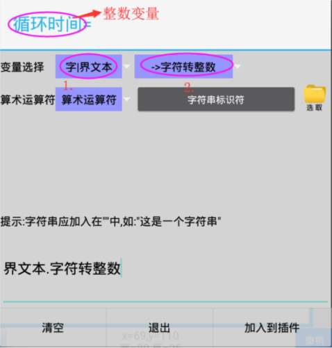 4、由于文本框文本为字符变量,而循环语句需要整数变量,因此需创建整数变量并将字符变量转换为整数。