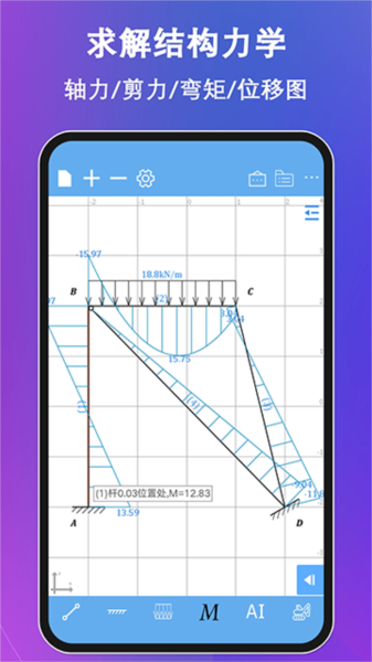 结构力学求解器是一款面向土木工程与建筑设计人员的专业分析工具,该软件集成了建模、计算与结果可视化等核心功能,用户可通过直观的触控操作完成结构绘制、添加约束与荷载,极大提升了工作效率。其功能全面,不仅能够绘制内力图,还涵盖动力学分析、影响线计算及几何构造判定,为工程设计与教学提供了有力的辅助。
