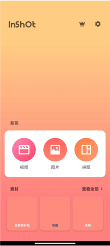1、打开手机中的InShot应用,可以选择导入照片或视频,也可进行拼图操作,或将多个视频合并为一个。