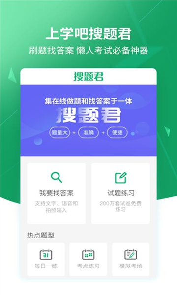 1、搜题范围广:软件收录试题超过一千万道,涉及公务员、教师资格、考研、保险、自考等热门考试,也包含继续教育、知识问答等相对少见的题目与解答。