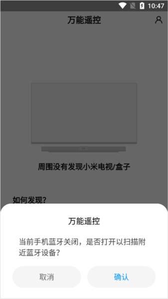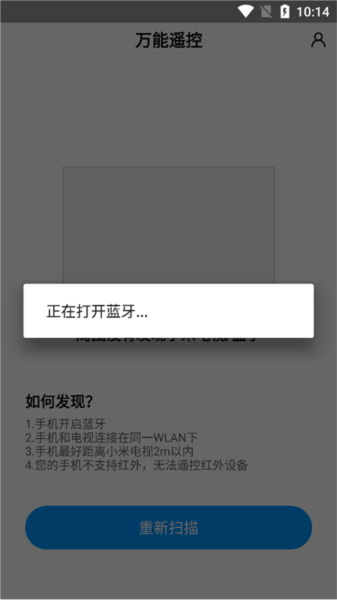 4、蓝牙开启后,应用将自动扫描并列出附近的小米电视或盒子,选择目标设备即可完成连接。
