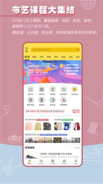 提供大量布艺教学课程,帮助用户逐步提升手工技能;