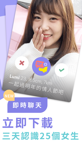 -- 滑动操作:通过简单的左右滑动完成喜欢与否的选择,即时匹配并与亚洲各地用户聊天。