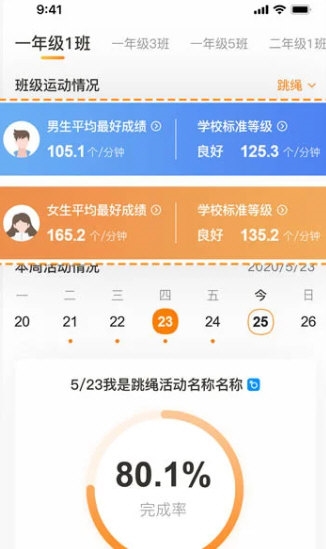 记录以周为单位的运动数据,轻松掌握学生每周的健康运动状况;