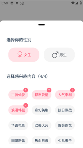1. 打开应用后,首先进入初始界面,用户可选择感兴趣的内容标签或直接跳过,进入软件主页。