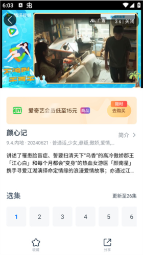 3. 播放前可能出现广告,点击关闭或跳过按钮后,便可正常观看视频正片。