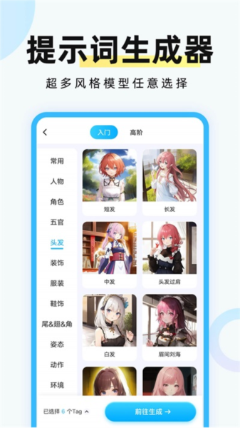 内置提示词库,提供多种类型提示词供使用,辅助创作画作;