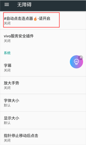 2、在无障碍权限设置界面,开启自动点击器的相应权限