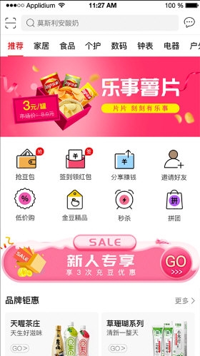 1、每日可参与百万红包瓜分活动,红包能直接抵扣货款,部分商品折扣低至三折;