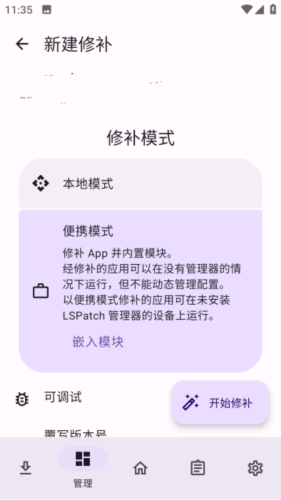 便携模式:将模块直接内置到应用中,修补后的应用可在无LSPatch的环境下独立运行,也能分享给他人,但更新模块或应用版本时需要重新执行修补流程。