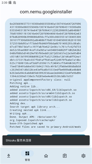 7. 若提示Shizuku服务未连接,则需要先卸载设备上已安装的原始版本应用。