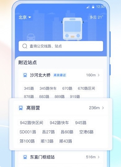 【公交站点】查看附近站点,公交线路清晰呈现