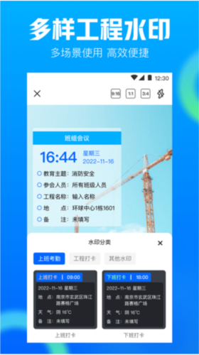 这款工作拍照应用体验出色,已成为多行业工作者的常用工具。它提供大量水印模板,满足各类记录需求,方便用户随时拍照记录工作与生活。水印照片自带真实时间与地点信息,防止后期修改。软件支持一键分享带水印的照片,操作快捷,兼顾工作与生活需要。其专业打卡功能适用于工程、物业、销售等多个领域,有助于提升工作与管理效能;通过拍照自动添加防伪水印,确保打卡信息真实可靠。