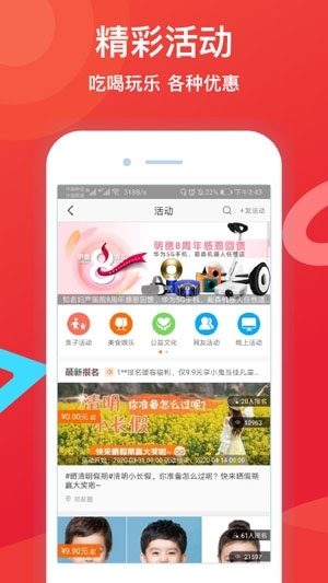 2、活动:提供平台主办及用户自发组织的各类活动信息;