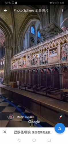 3. 在搜索框输入地点如巴黎圣母院,即可从空中俯瞰其全景;